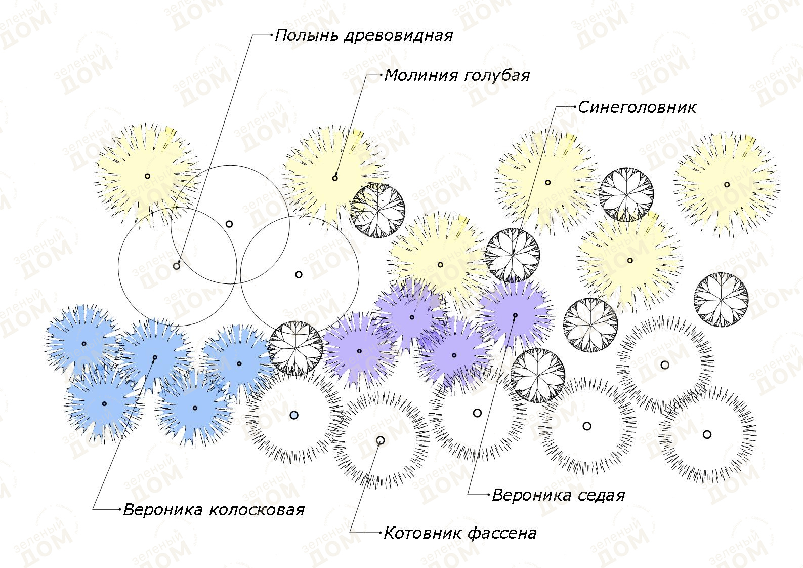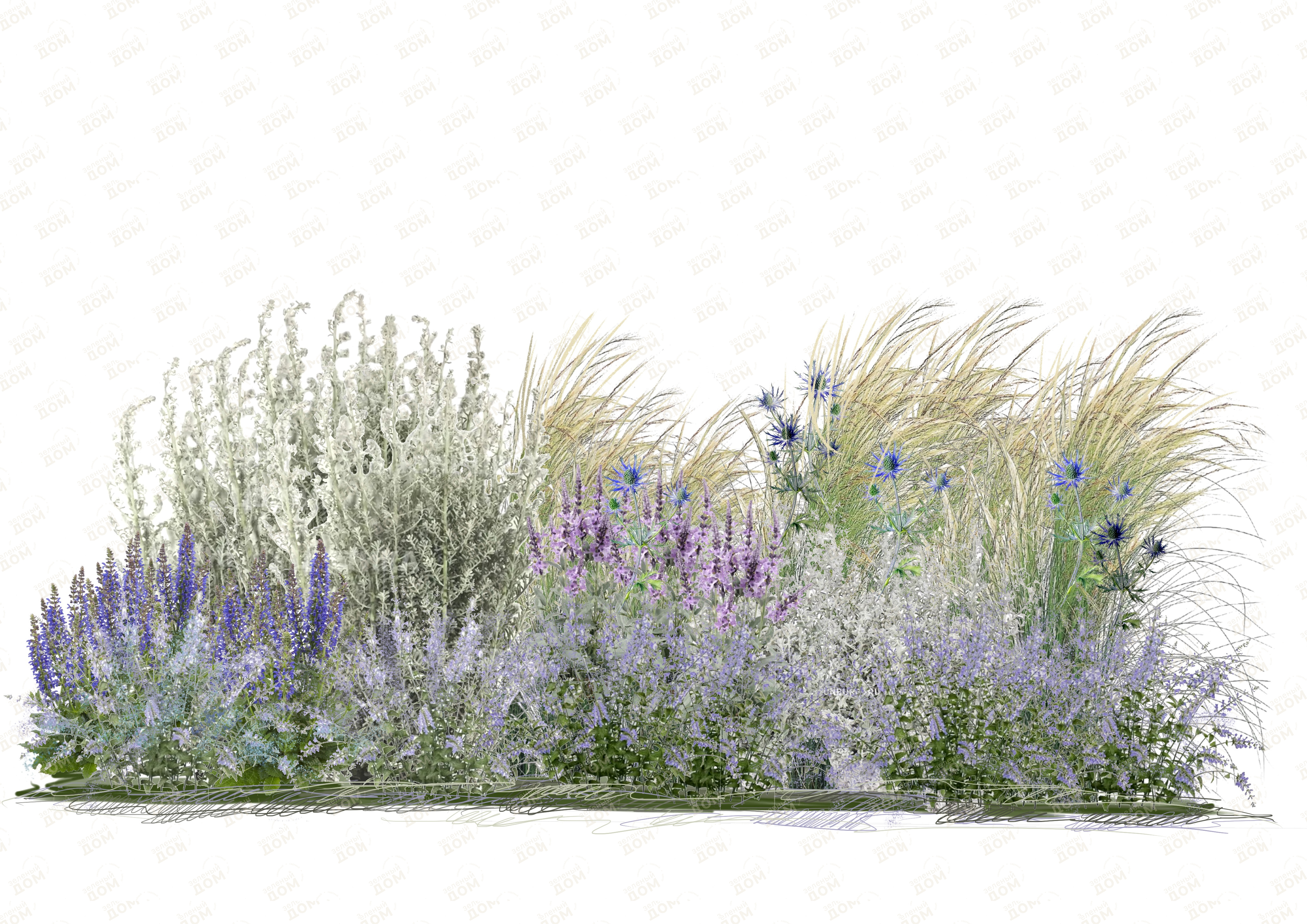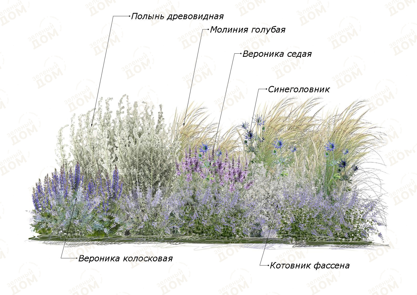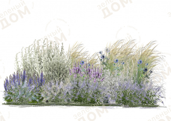 Растения идеально сочетаются друг с другом, создавая необычную атмосферу голубой дымки.